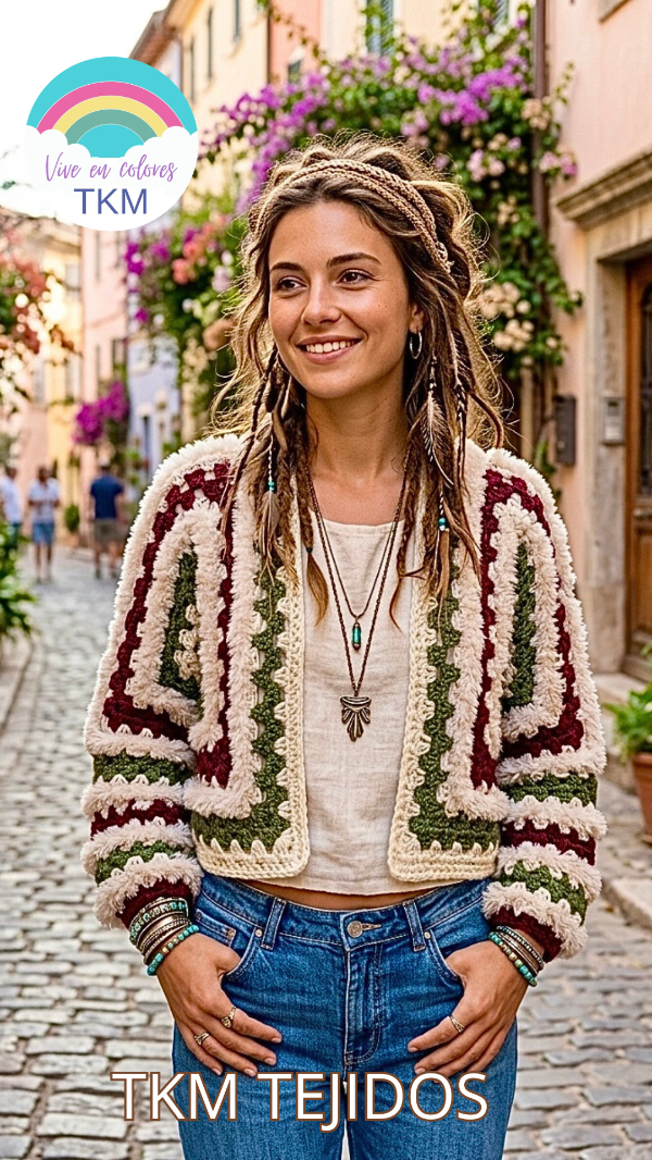 Descubre cómo tejer esta hermosa chaqueta de estilo bohemio con el tutorial Bohemian Soul Crochet Jacket, un diseño que combina la esencia clásica del crochet con un toque moderno y en súper tendencia.