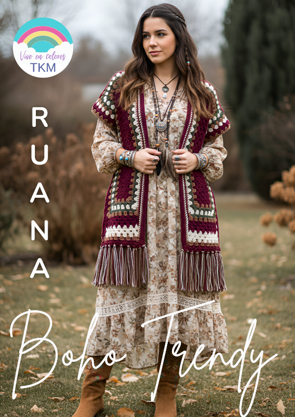 Descubrí la prenda estrella de la temporada: un poncho-cardigan tejido en crochet, inspirado en el estilo boho chic y elaborado con una armonía de colores tendencia 2026. Su diseño en bloques geométricos, combinado con flecos móviles, crea una pieza fresca, vibrante y súper combinable.