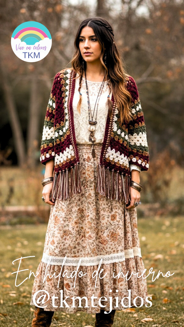 Además puedes crear un look bohemio e invernal, si lo tejes con hilados de esta temporada.