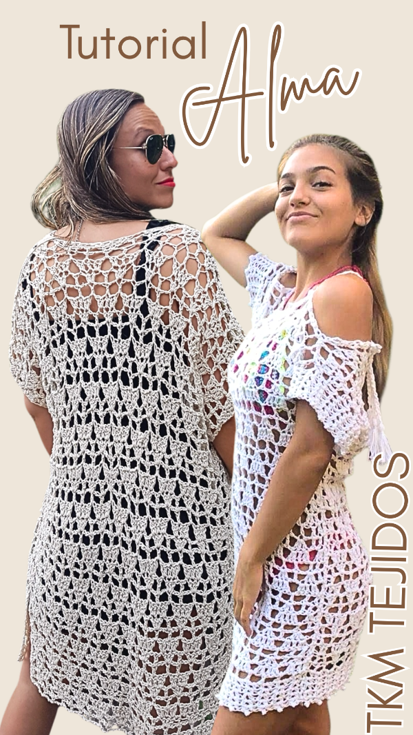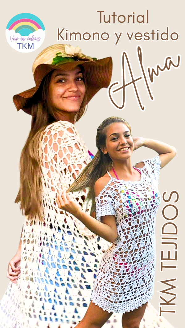 En este tutorial contiene el paso a paso en vídeo, patrón y gráfico y todo lo que necesitas para realizar este fabuloso diseño de kimono y su versión en vestido playero .