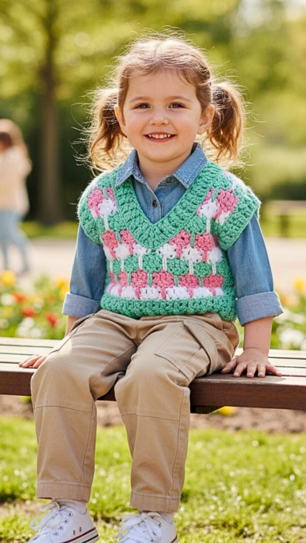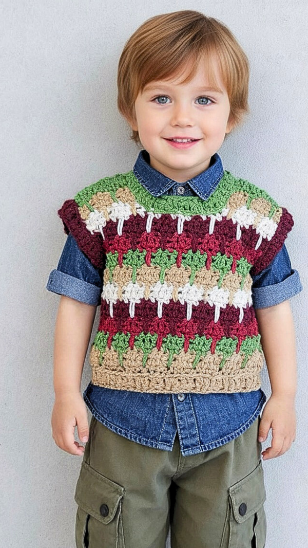 En el mismo te enseño a realizar una linda trama para luego aplicarla en dos estructuras distintas de chalecos.